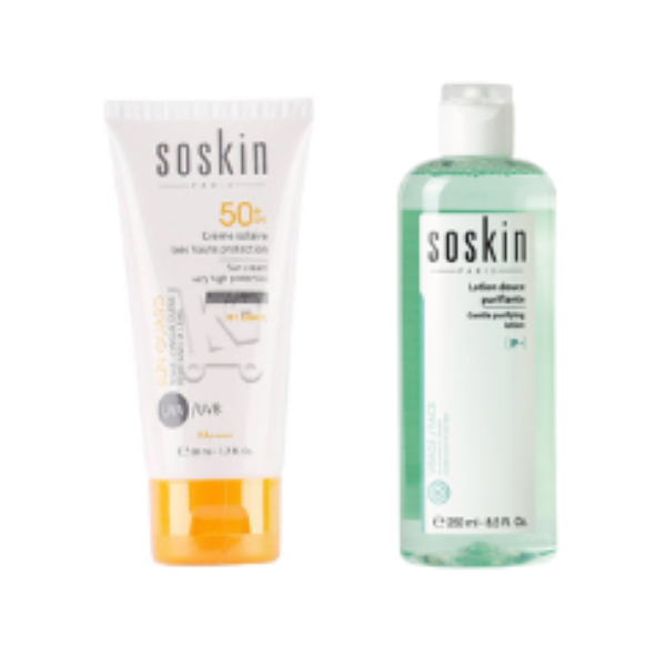 SOSKIN PACK CREME SOLAIRE SPF50+ INVISIBLE 50ML + GEL NETTOYANT PURIFIANT 100ML
