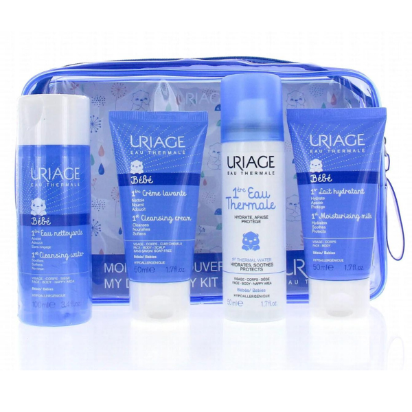 URIAGE BEBE KIT VOYAGE CREME LAVANTE NETTOYANTE 50ML + EAU NETTOYANTE 100ML + EAU THERMALE 50ML + LAIT HYDRATANT 50ML